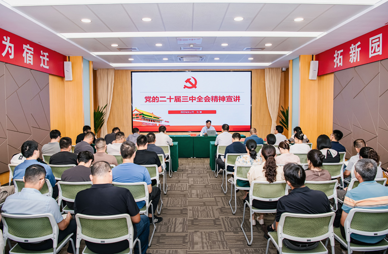 為深入學(xué)習(xí)貫徹黨的二十屆三中全會(huì)精神,把“黨的聲音”傳遞到基層,進(jìn)一步推動(dòng)黨的二十屆三中全會(huì)精神在園區(qū)落地生根,9月18日,園區(qū)城發(fā)公司召開學(xué)習(xí)貫徹黨的二十屆三中全會(huì)精神宣講會(huì)。會(huì)議由蘇宿工業(yè)園區(qū)黨工委宣講團(tuán)成員、園區(qū)城市發(fā)展投資有限公司總經(jīng)理助理、國(guó)資國(guó)企黨委副書記張?bào)K宣講,園區(qū)城發(fā)公司和蘇宿鄰里公司全體員工參加。