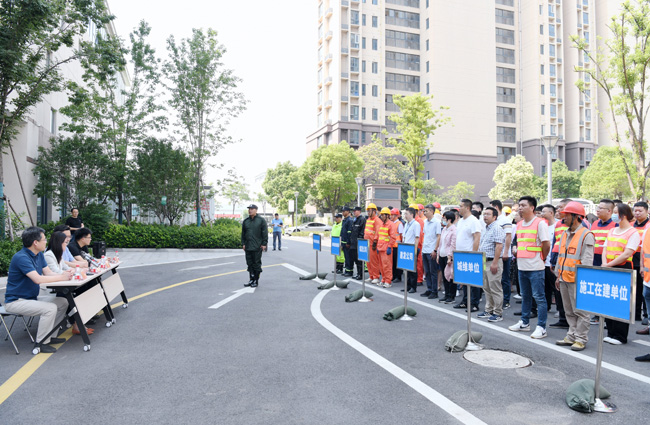 “城發(fā)公司2023年防汛應(yīng)急演練開(kāi)始”! 6月15日上午,隨著指揮長(zhǎng)一聲令下,城發(fā)公司2023年防汛演練正式拉開(kāi)帷幕。本次演練由建發(fā)公司組織, 城發(fā)公司董事長(zhǎng)、總經(jīng)理李蘭霞,城發(fā)公司總經(jīng)理助理張?bào)K,建發(fā)公司副總經(jīng)理倪松、城發(fā)公司各部門負(fù)責(zé)人和兼職安全員及在建項(xiàng)目單位代表,建發(fā)公司市政物業(yè)部和物業(yè)管理部全體參加觀摩。