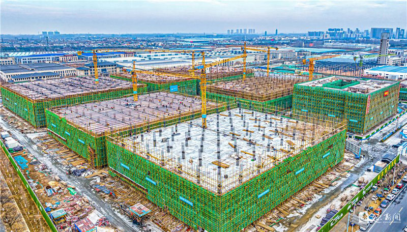 12月26日,蘇宿工業(yè)園區(qū)智慧信息產(chǎn)業(yè)園項(xiàng)目施工現(xiàn)場(chǎng),建設(shè)人員正在有序施工。