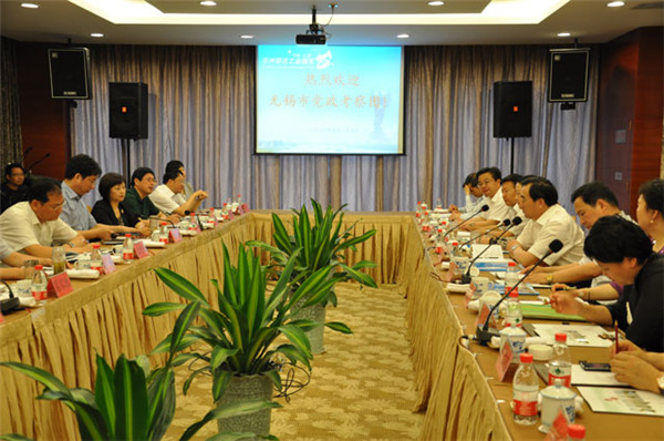 無錫黨政代表團(tuán)實(shí)地觀摩了園區(qū)規(guī)劃展示廳、園區(qū)公舍、鄰里中心等地。