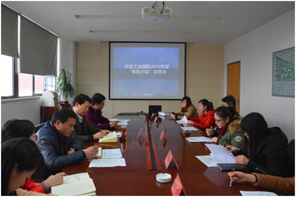 為搶抓春節(jié)招聘良機(jī),服務(wù)好園區(qū)企業(yè)用工,2月15日下午,園區(qū)召開2015年度“春風(fēng)行動”推進(jìn)會,可成、長電、天御、蘇瓷等7家園區(qū)重點(diǎn)用工企業(yè)參加了會議。