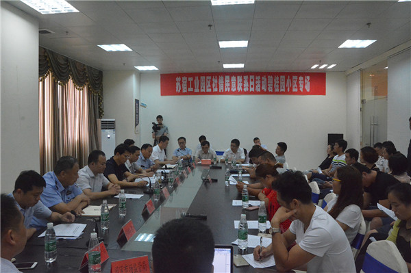 園區(qū)黨工委委員、管委會副主任戈亮帶領(lǐng)園區(qū)勞動保障和社會事業(yè)、市場監(jiān)管、公安、宿遷市蘇州外國語學(xué)校等部門、單位負(fù)責(zé)同志與20余名業(yè)主代表們“面對面”座談。活動還邀請了市教育局、市信訪局有關(guān)負(fù)責(zé)同志出席
